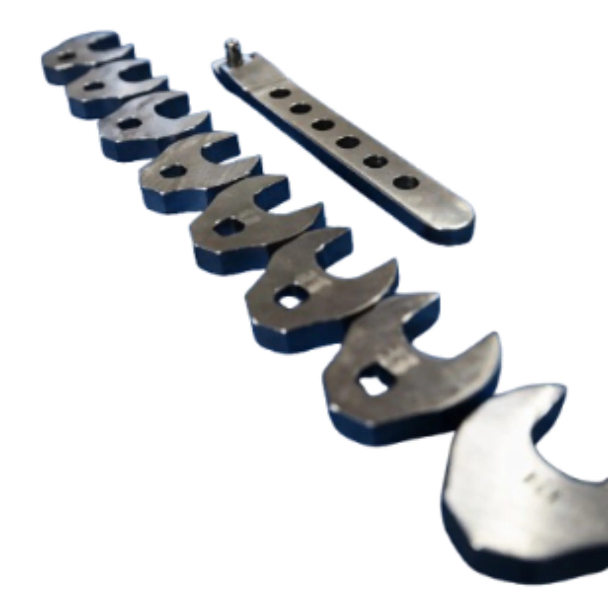 The AEROLITE foot is designed to snap into the AEROLITE wrench creating the ability to carry a number of wrench sizes at a fraction of the size and weight. A set of standard steel wrenches would weigh a whopping 275% MORE!