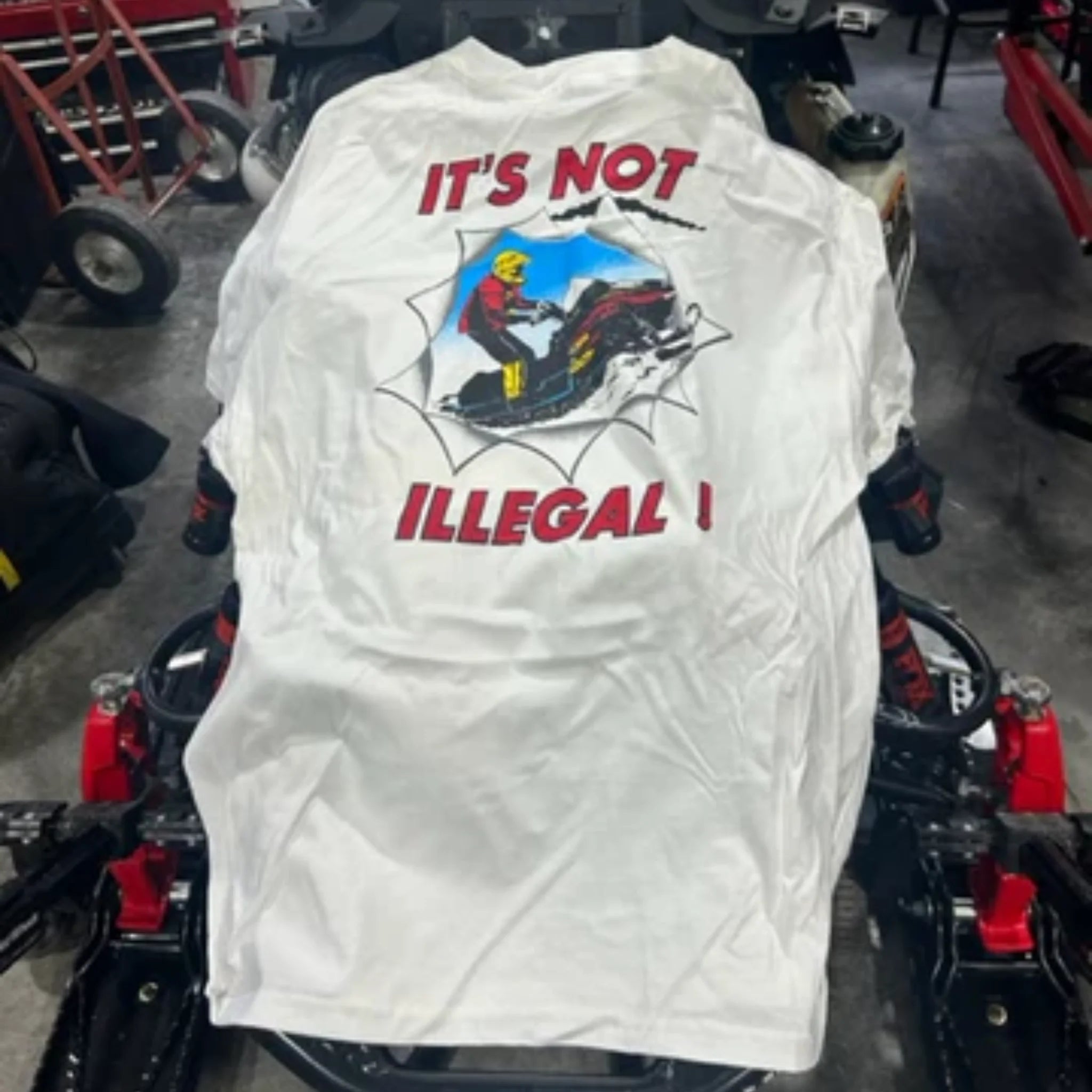 Soft, cotton T-Shirts with Retro Graphic. We get a lot of "looks" at the trailhead or when fueling up, this is to remind those who don't know.. "ITS NOT ILLEGAL''